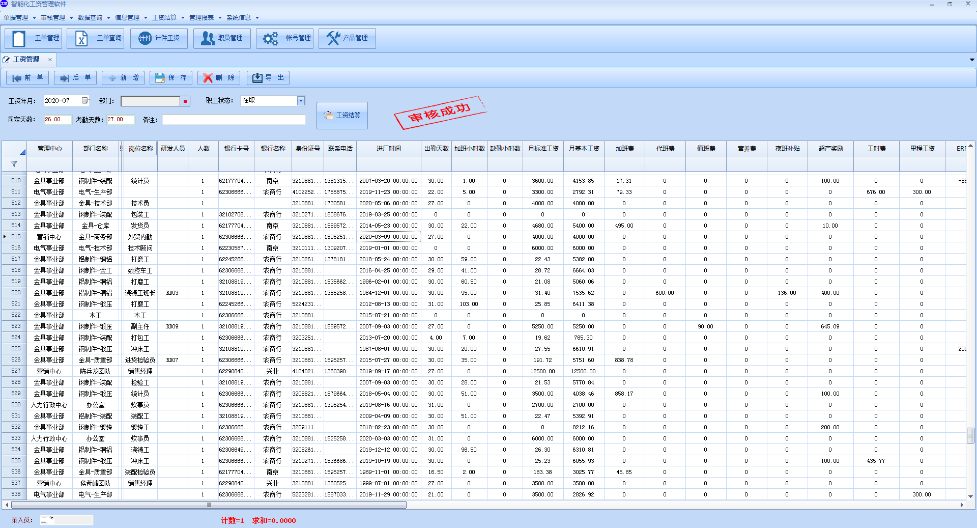 支持多种工资计算方式(计件工资、计时工资、固定工资、浮动工资、手动工资等)